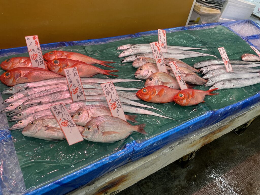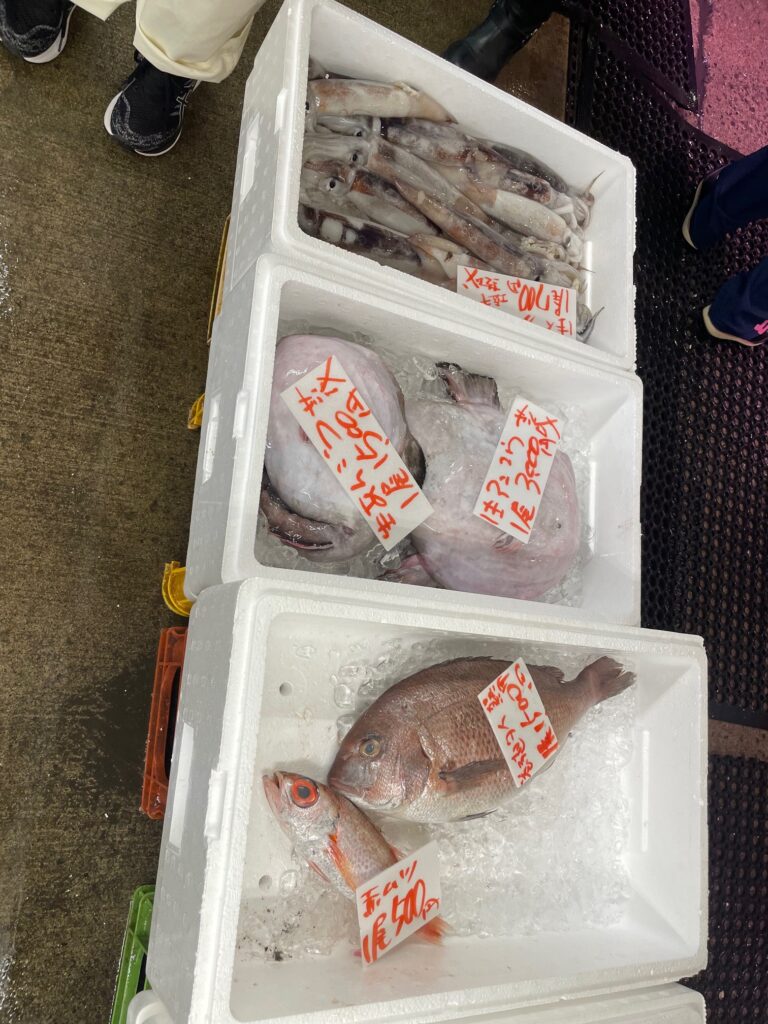 市場では地元で獲れた魚介類の他、北海道や東北で獲れた海の幸を買うことができます。しかも格安!