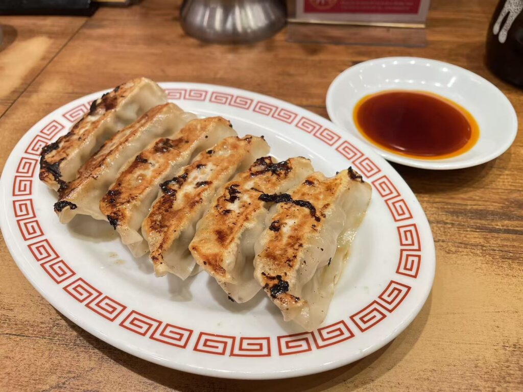 Read the QR code on the table with your phone and order your food. The staff told me that the half-price gyoza campaign was still on, so I ordered this as well. The ramen and back fat black fried rice (mini) arrived.