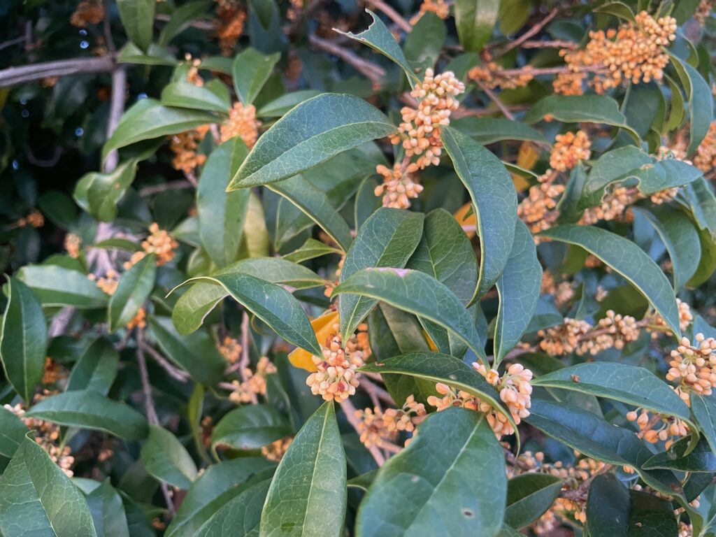 この季節に香りを楽しませてくれるのが金木犀。園内には大きな金木犀が所々に飢えてあり、甘い香りが漂っています。