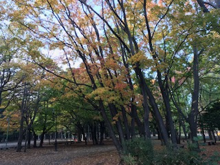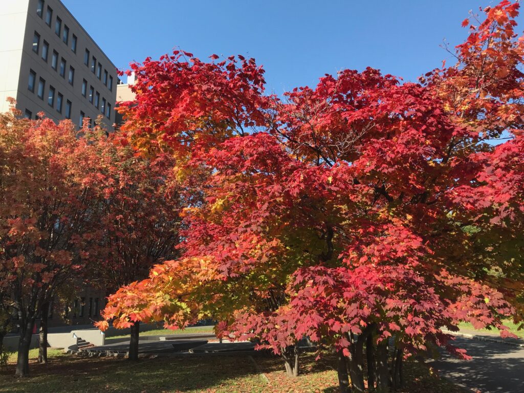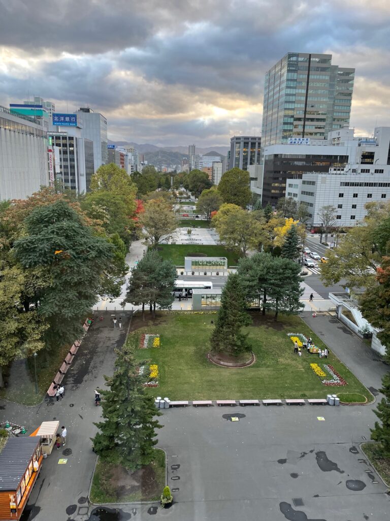 大通公園の紅葉も所々で楽しむことができます。あと1か月もするとクリスマスの雰囲気に様変わりします。気温が低い土地なので紅葉の色づきは鮮やかです。
