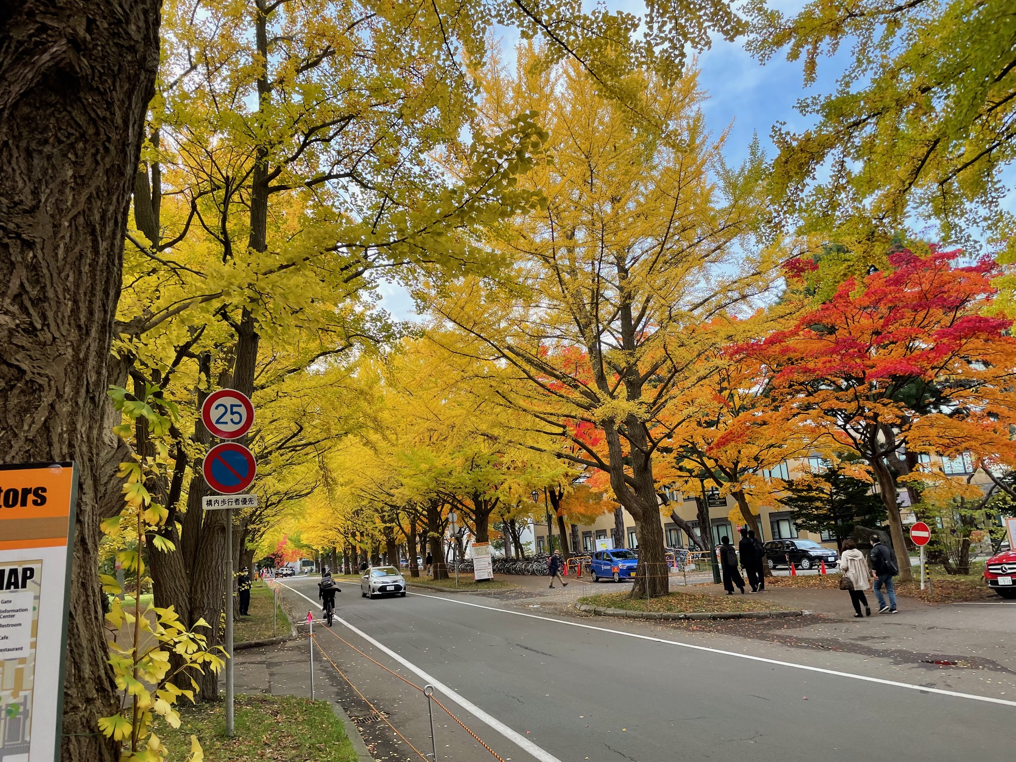 10月になれば札幌では気温がぐっと下がり街の中の木々も色づき始めます。市内には円山公園、藻岩山、大通公園、北海道大学、旧道庁など風光明媚な公園がたくさんあります。秋の札幌の風景も魅力的、さわやかで少し肌寒い空気の中をウオーキングするのもお勧めです。