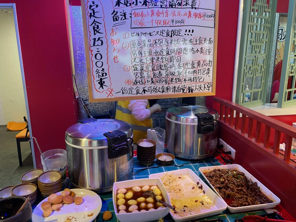 そして副菜はこちらのテーブルから自分の好きなものを好きなだけ。牛肉の水煮があまりに量が多いので控えめになってしまいました。