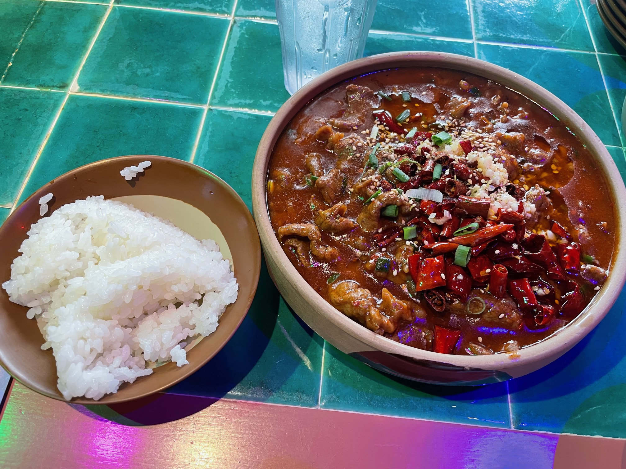 What makes it different from China is that there are three levels of spiciness to choose from. Of course, I chose the very spicy one. The spicy broth with well-cooked beef and pepper is just the way I like it.