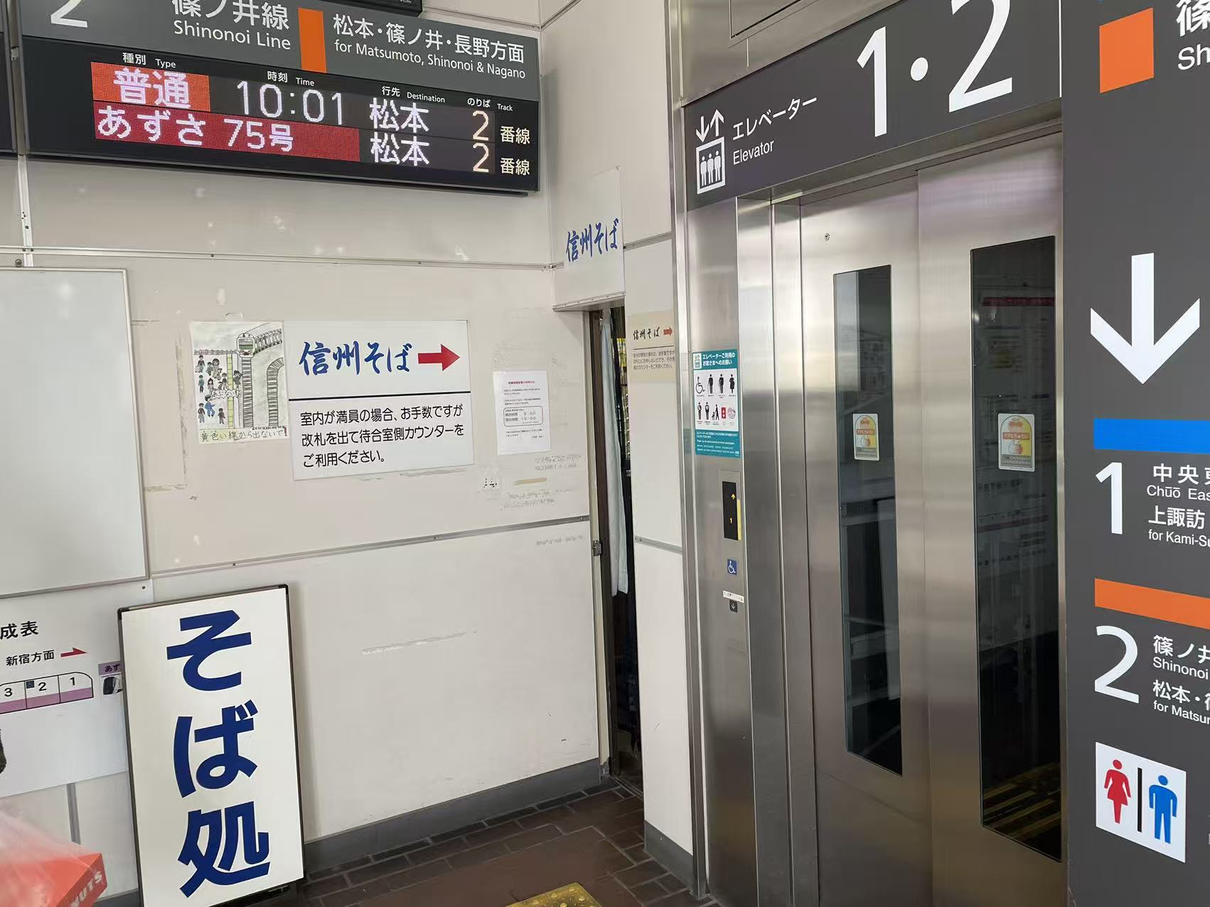 先日、長野県を旅行した際、特急列車の乗り換えで立ち寄った塩尻駅。太平洋と日本海の分水嶺であり、かつて中央線の難所の一つとして知られていた塩尻駅では、1982年の駅舎移転と2002年のバリアフリー化に伴い同駅にエレベーターが設置され、そのときに駅構内と駅郊外の間に厨房を設けた立食いの信州そばの桔梗がある。