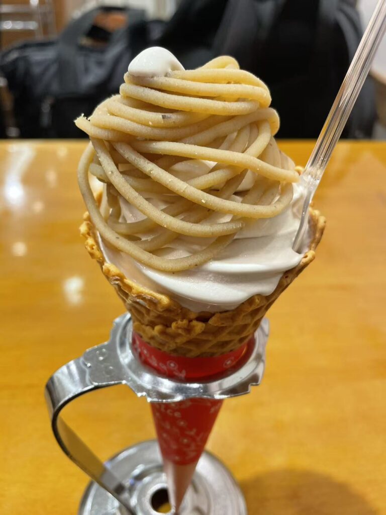 新幹線に乗る前に酔醒ましで栗ソフトを食べた