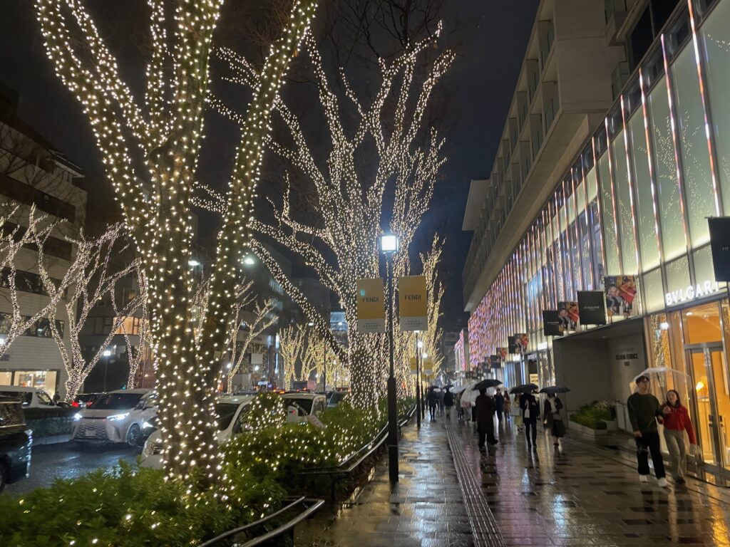 25th December, Christmas Day. Unfortunately, it was a rainy day, but the popular areas ablaze with illuminations were bustling with crowds. This time, we introduce Tokyo’s Omotesando and Shibuya. Both are areas hugely popular with young people.