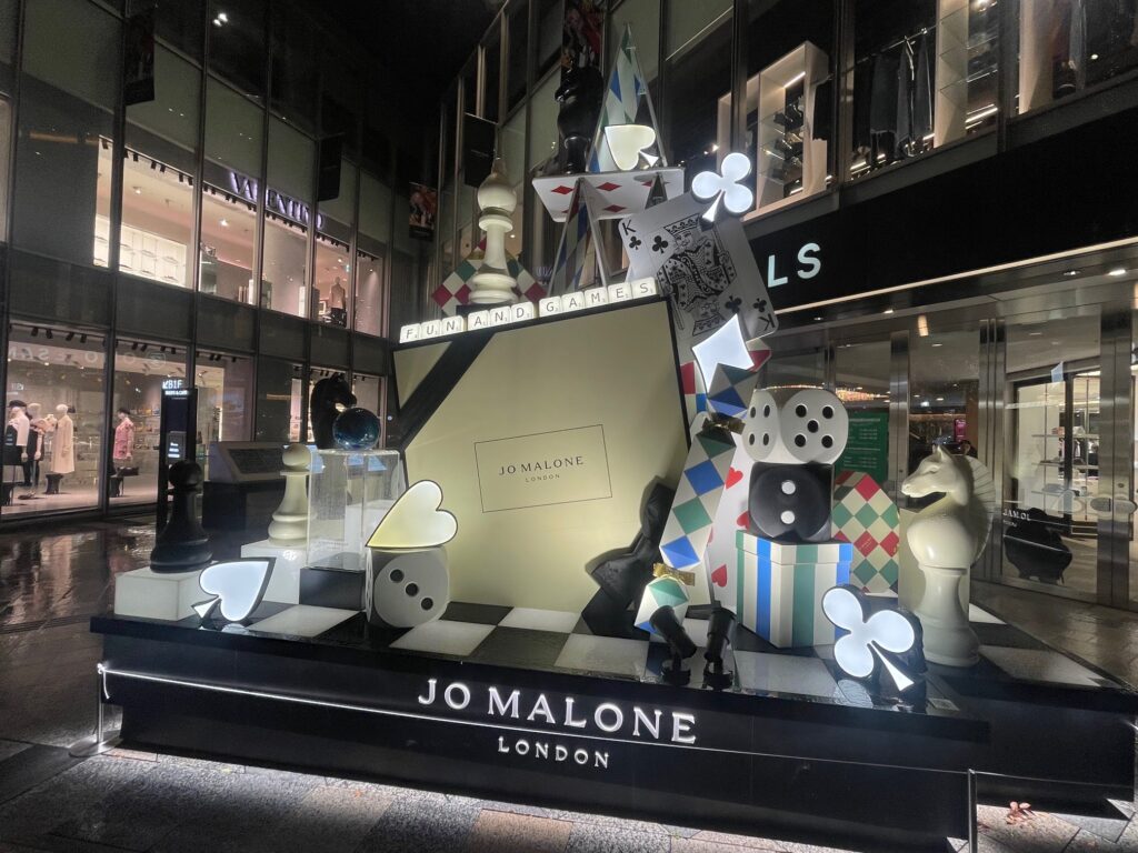 ところどころにはブランドショップがお店の前で素敵な演出を楽しませてくれ、外国にいるような感覚にしてくれます。ついついショップに入ってみたくなりますね。