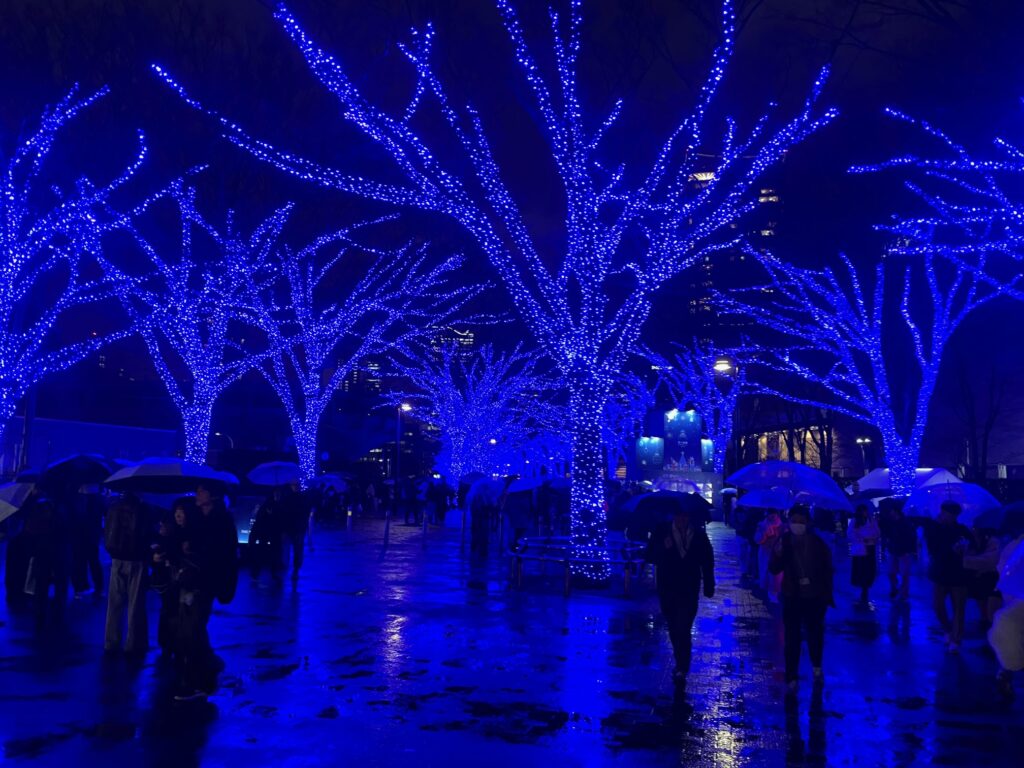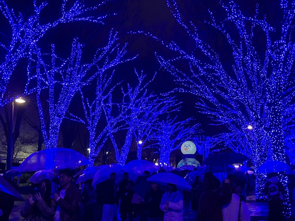 A blue world unfolds at the entrance to Yoyogi Park, a ten-minute walk from Omotesando. True to its name, the ‘Blue Grotto’ immerses visitors in a vivid blue cavern, with deep blue illuminations filling the trees lining both sides. This fantastical world creates an atmosphere distinct from other Christmas displays.