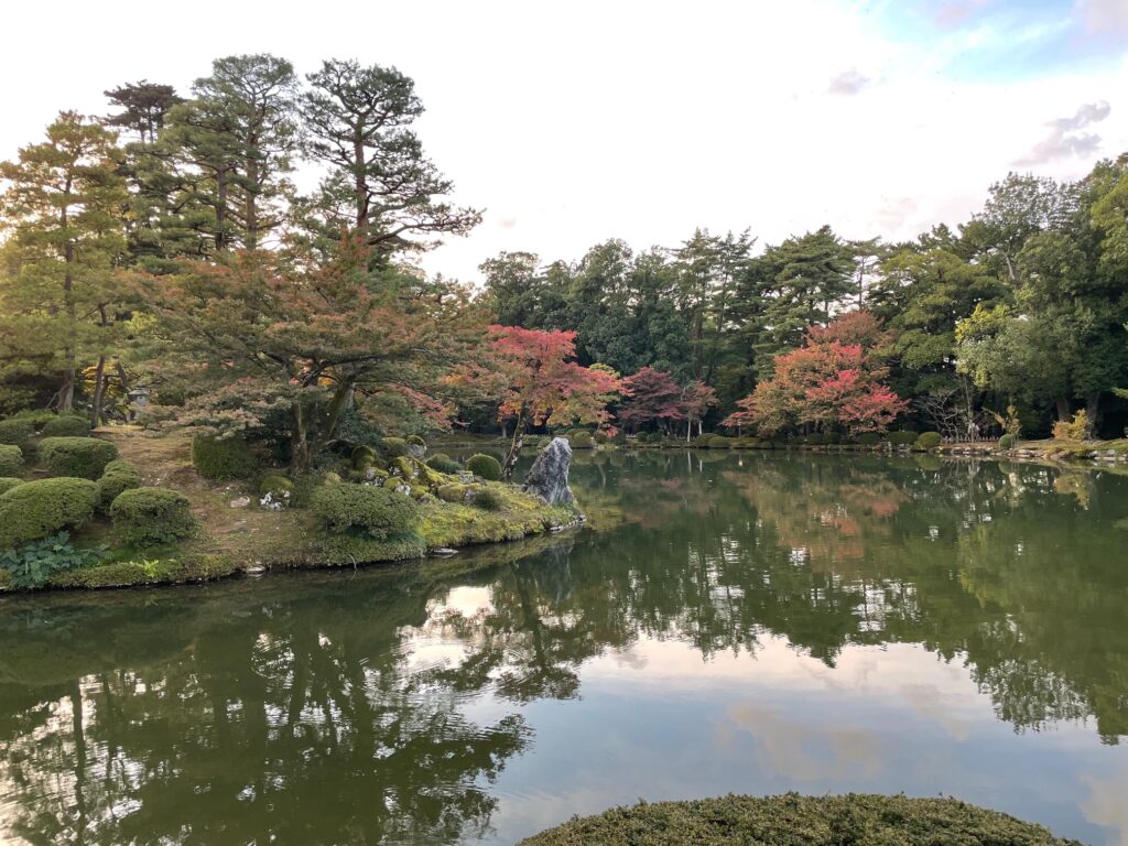金沢で最も有名な公園は「兼六園」。日本三大名園の一つで、春は桜、夏は新緑、秋は紅葉、冬は雪景色と四季折々の風景を楽しむことができます。17世紀の加賀藩によって造られた庭園で周回しているだけで歴史と文化を感じることができます。私が訪れたのは11月だったので紅葉になりかけの時期でしたが、風情を感じることができました。