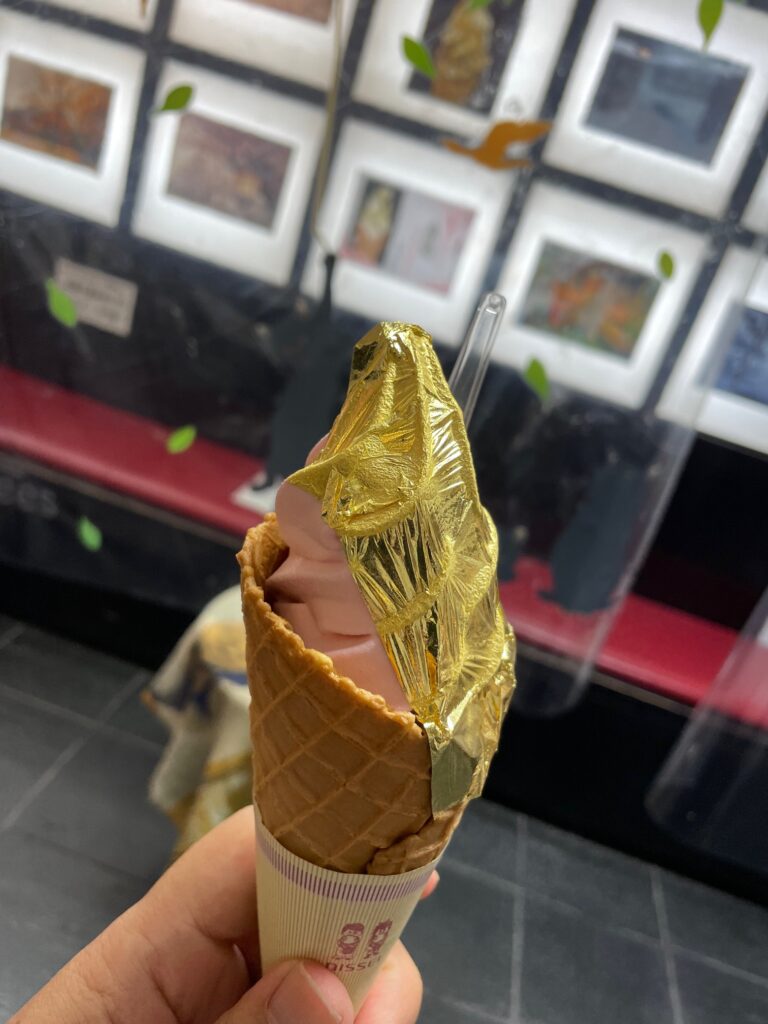 金沢と言えば「金箔」が有名。兼六園の近くにあるお店では金箔アイスが販売されていました。味は金独特の味、、、はしませんが、なんとなくリッチになった気分になります。