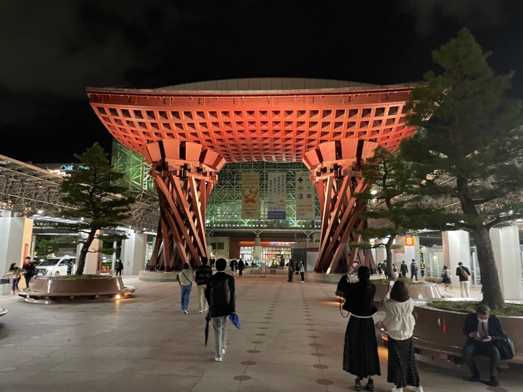 The Hokuriku region of Japan is a place brimming with the country’s finest tourist attractions, including natural beauty, hot springs, history and cuisine. The number of international visitors is growing year on year, and the region’s appeal is spreading across the globe. In this article, we’ll introduce some of the highlights of Kanazawa. The photo below shows the ‘Kumon’ gate in front of Kanazawa Station. This gate, designed in the shape of a drum used in the traditional Japanese performing art of Noh, welcomes visitors to the city.
