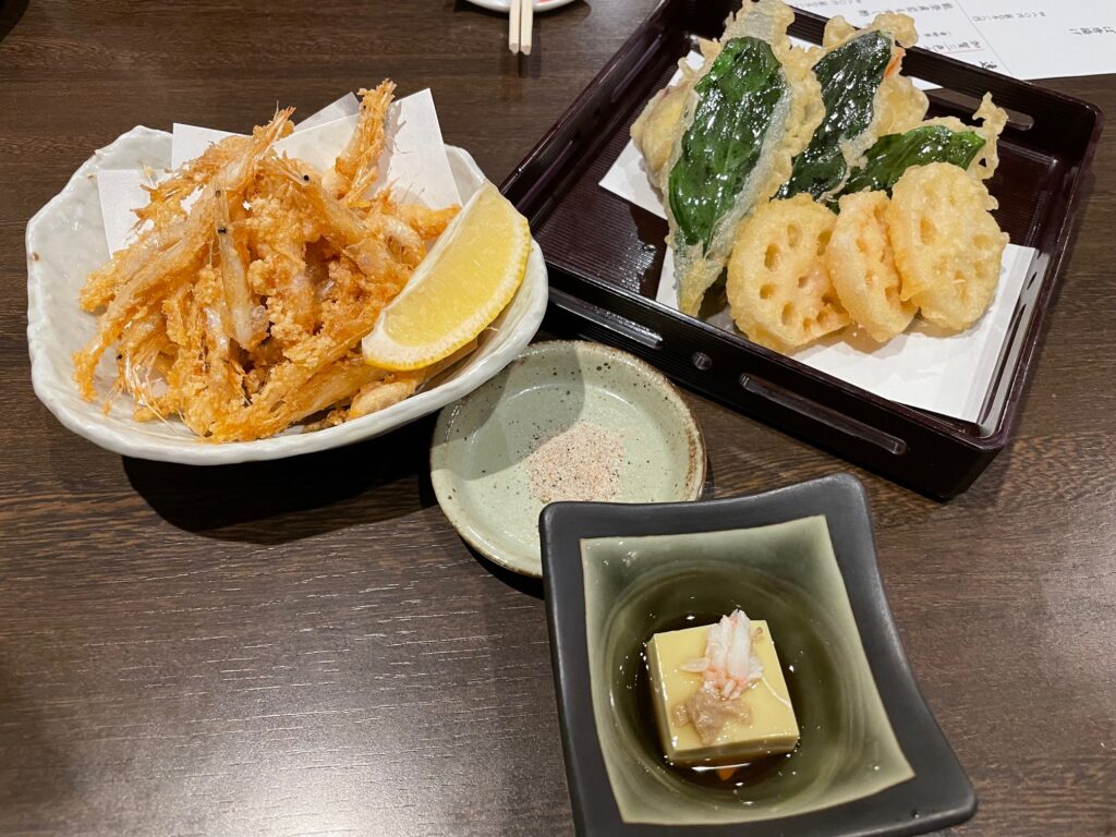 海の幸を美味しくいただくには刺身は欠かせません。日本海の魚の刺身、口の中に旨味と潮の香りが広がります。北陸でのどぐろと並んで有名なのは白エビ。甘くてぷりぷりした新鮮な白エビは刺身でも天ぷらでもお勧めです。