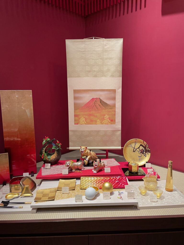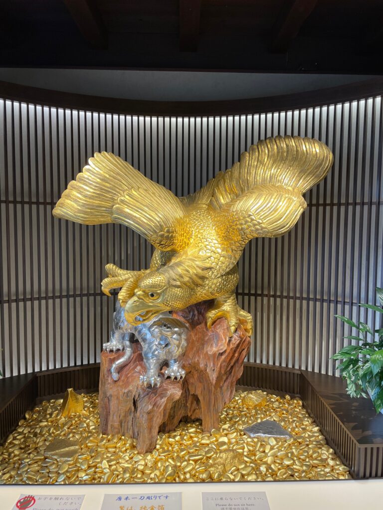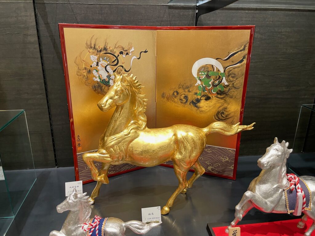 金箔の工芸品です。どの工芸品も美しく金色に輝いています。