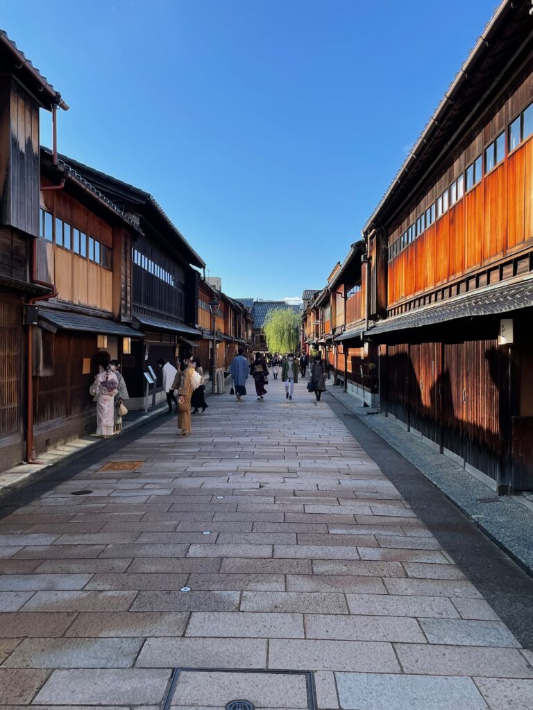 The most famous park in Kanazawa is Kenroku-en. As one of Japan’s three great gardens, it offers visitors the chance to enjoy the changing scenery throughout the seasons: cherry blossoms in spring, fresh greenery in summer, autumn foliage in autumn, and snowy landscapes in winter. Created by the Kaga Domain in the 17th century, simply strolling around the garden allows you to soak up its history and culture. I visited in November, just as the leaves were beginning to turn, and I was able to appreciate the garden’s unique charm.
