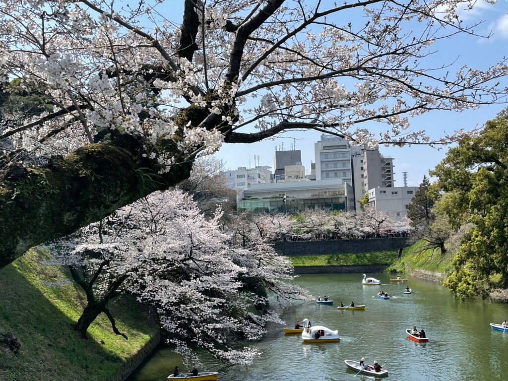 First up is ‘Chidorigafuchi’, a famous cherry blossom spot in the city centre. This park, built around the outer moat of Edo Castle, is home to 230 cherry trees that bloom beautifully. The view of the expansive moat and cherry blossoms from the hilltop creates an elegant atmosphere that feels a world away from the city centre. The view from the water, as seen from a boat, is also delightful.