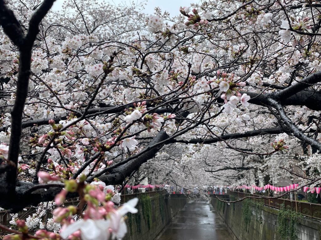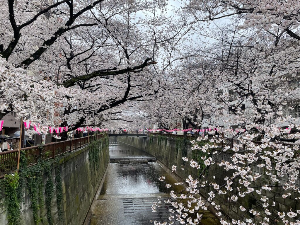 再び都心部に戻って紹介するのは目黒川の桜。目黒川沿い4KMに渡って800本の桜があります。夜には期間限定でライトアップもされていてたくさんの人が出かけてきます。