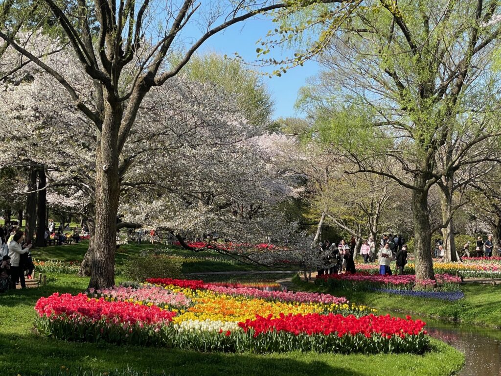 About a 30-minute train ride west of the city centre lies the Showa Memorial Park in Kunitachi, which delights visitors with its ever-changing seasonal scenery. In spring, alongside 1,500 cherry trees of 32 different varieties, rapeseed flowers, tulips and many other blooms come into full bloom, offering a soothing respite for visitors. I particularly love the contrast between the cherry blossoms and the rapeseed flowers.