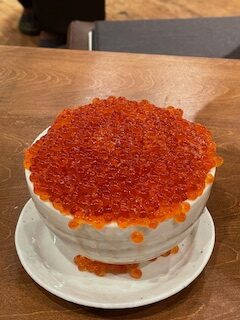 The final touch is a salmon roe bowl. Several restaurants offer salmon roe bowls with salmon roe spilling over.